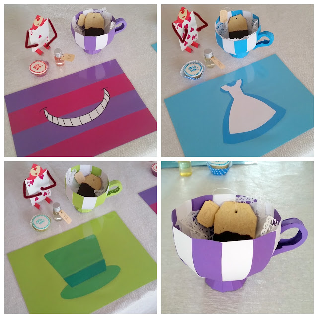 Der blev lavet tepose-småkager, “spis-mig” kager og en stor kage med udgangspunkt i Alice, Filurkatten og Den Gale Hattemager.