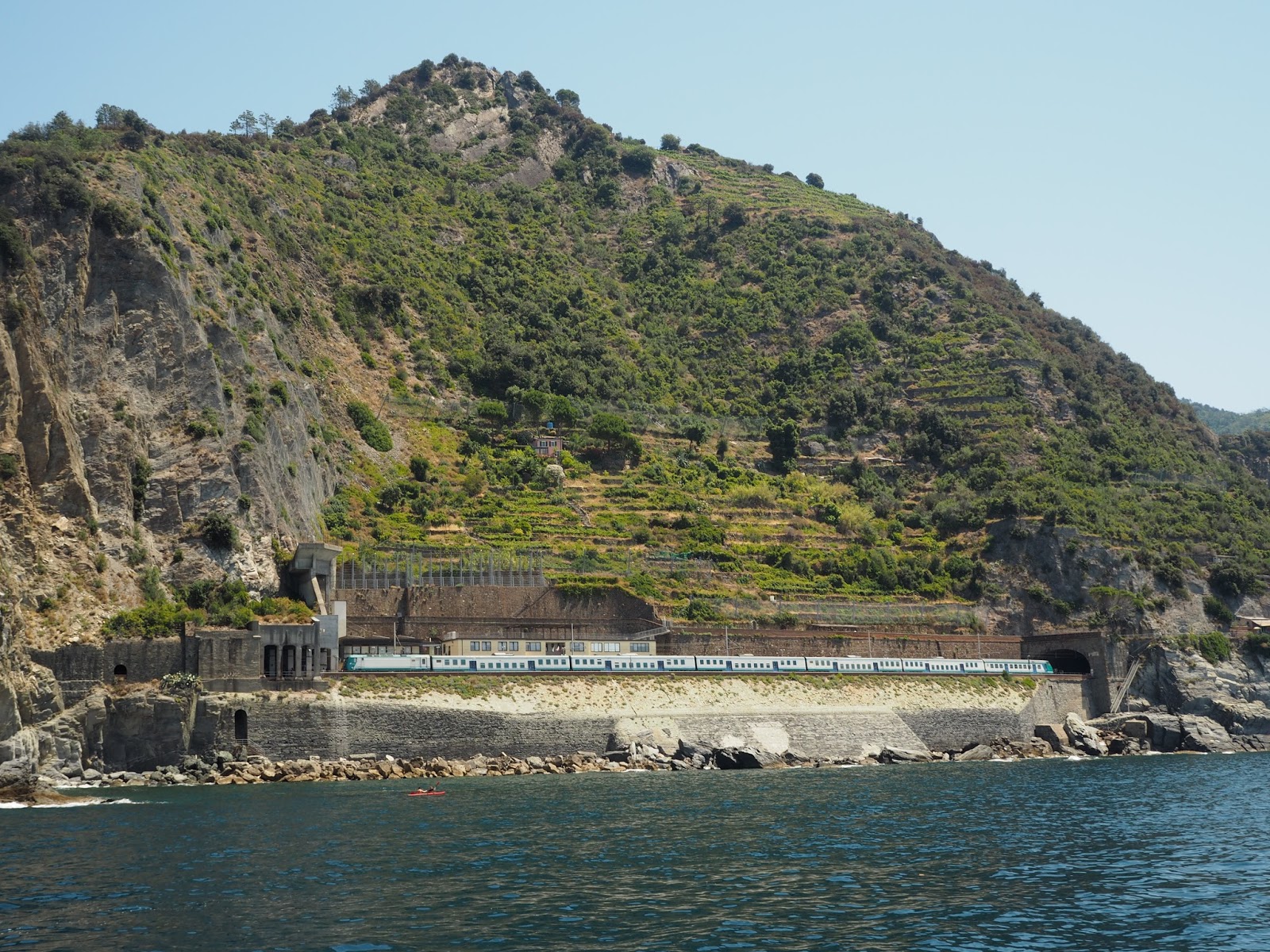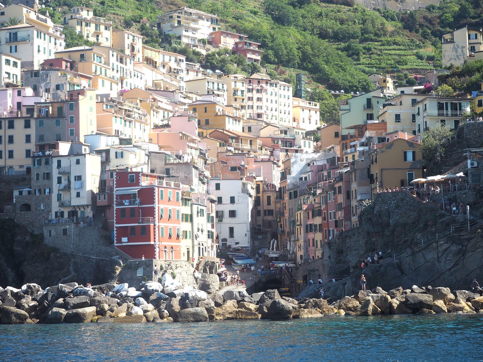 Vi besluttede at blive på båden og istedet stå af ved næste by, som er den første af de 5 byer; Riomaggiore. Vi holdt os til højre side af båden, hvor vi kunne se den flotte kyst.