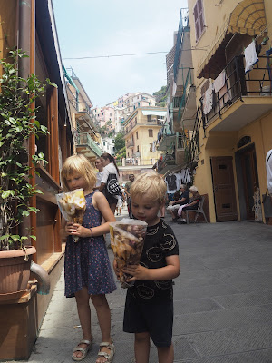 Det tager tid for de små ben op og ned af stejle trapper og små gader, så vi endte med at blive i byen i ca. 2 timer. Man kan vist nok gå til næste by via den sti, de kalder kærlighedsstien, som skulle være 1 km, men vi forsøgte ikke.