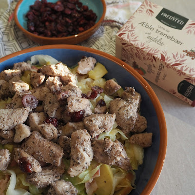 Inspireret af den oplevelse har jeg derfor lavet denne lækre ret med te marineret kylling. Jeg valgte at bruge Fredsteds økologiske æble tranebær te, da det jo er efterår og for mig er retter med æble rigtige efterårs retter.