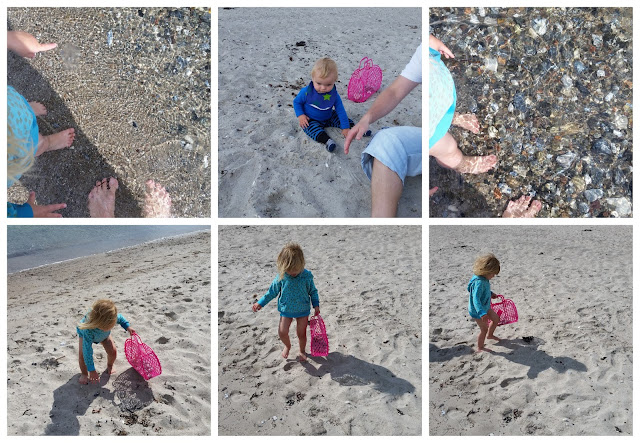 Onsdag pakkede vi os derfor godt ind for det blæste en del. Vi nåede dog kun lige stranden, så kom solen frem, så af med noget af al tøjet og så blev der ellers hygget på stranden. Planen var at vi skulle soppe og samle sten, men Trolden fik sat sig i vandkanten, så hun nåede da helt i.